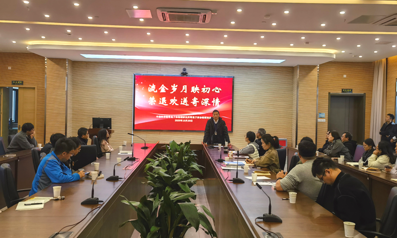10月20日下午,九室党支部召开“流金岁月映初心 荣退欢送寄深情”主题党日活动。活动由党支部书记刘海庆主持,支部全体党员和研究室全体职工群众齐聚一堂,为胡立群老师举行荣休欢送仪式。
