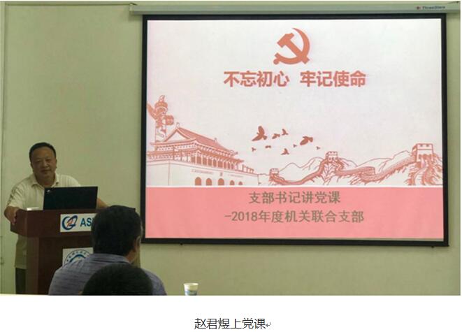 为深入落实推进“三会一课”制度,7月3日下午,四室五室七室十二室联合党支部邀请所党委委员赵君煜研究员上了一堂“不忘初心牢记使命”专题教育党课,此次党课学习由联合党支部书记高翔主持。