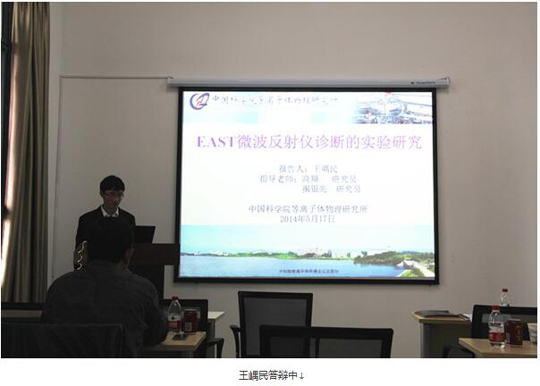 5月17日下午,综合研发楼405会议室举行硕士博士学位论文答辩会,王正兴作题为:“EAST托卡马克偏振干涉仪台面实验研究”硕士论文汇报,王嵎民作“EAST微波反射仪诊断的实验研究”的博士论文汇报。 月19日下午,郝德松在所七室一楼会议室参加论文答辩,完成“5kW/4.5K氦制冷系统除油及纯化装置设计研究”硕士论文答辩。 祝贺以上四位同学顺利完成毕业论文答辩,也祝福他们在以后的工作和学习中不断取得新的成绩。