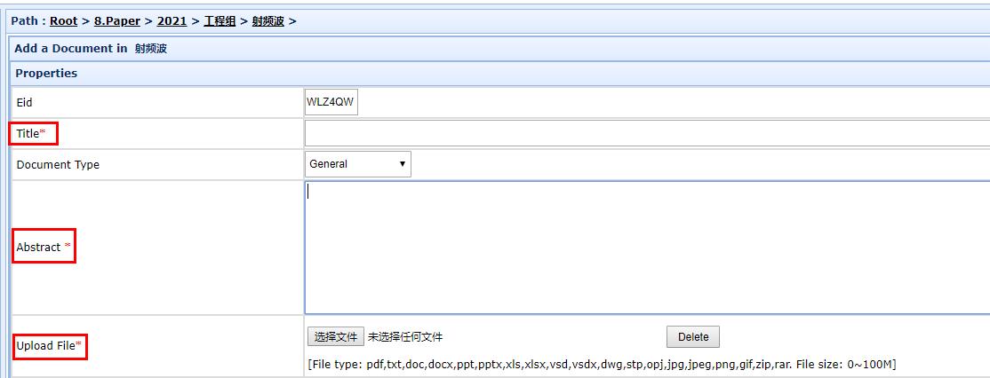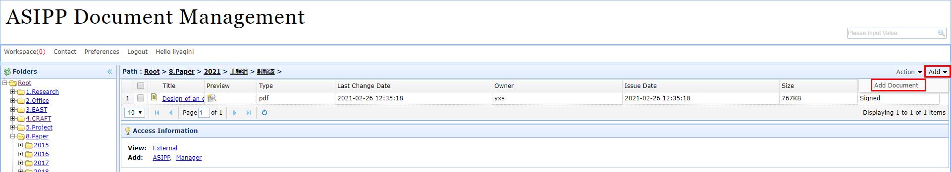 2、登录系统后,选择组别和方向,点击Add→Add Document。