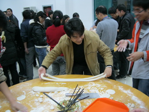冬至,是冬天来临的日子,这一天,全国人民都要吃饺子“以防冬天冻掉耳朵”,为了让同学既感受到冬至的节气,同时又培养集体生活观念,增进友谊,两个所的09硕士班近80位同学齐聚科西餐厅一起包饺子、吃饺子,其乐融融。