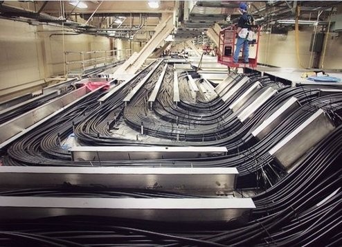 为激光器的7680个闪光灯提供电能的超过160公里的高压电缆