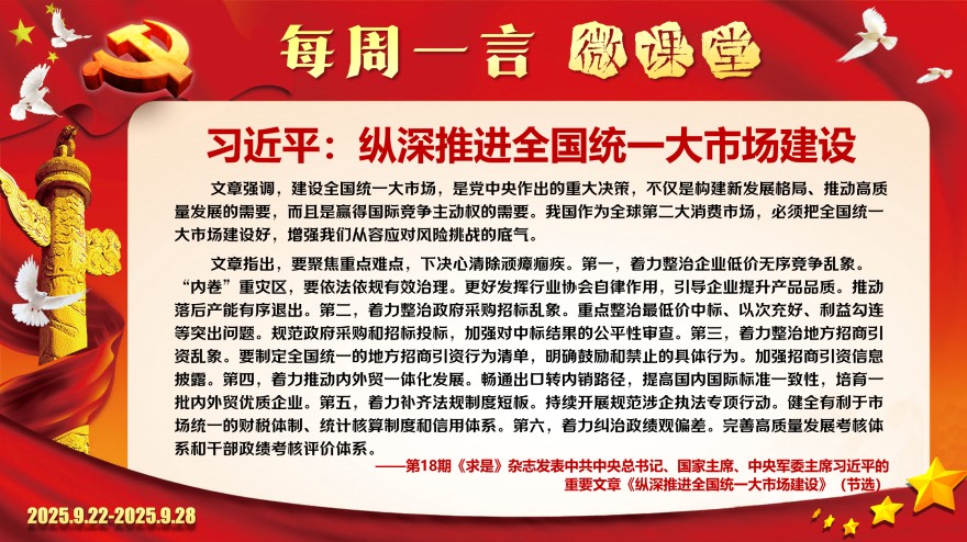 【20250922每周一言】习近平:纵深推进全国统一大市场建设