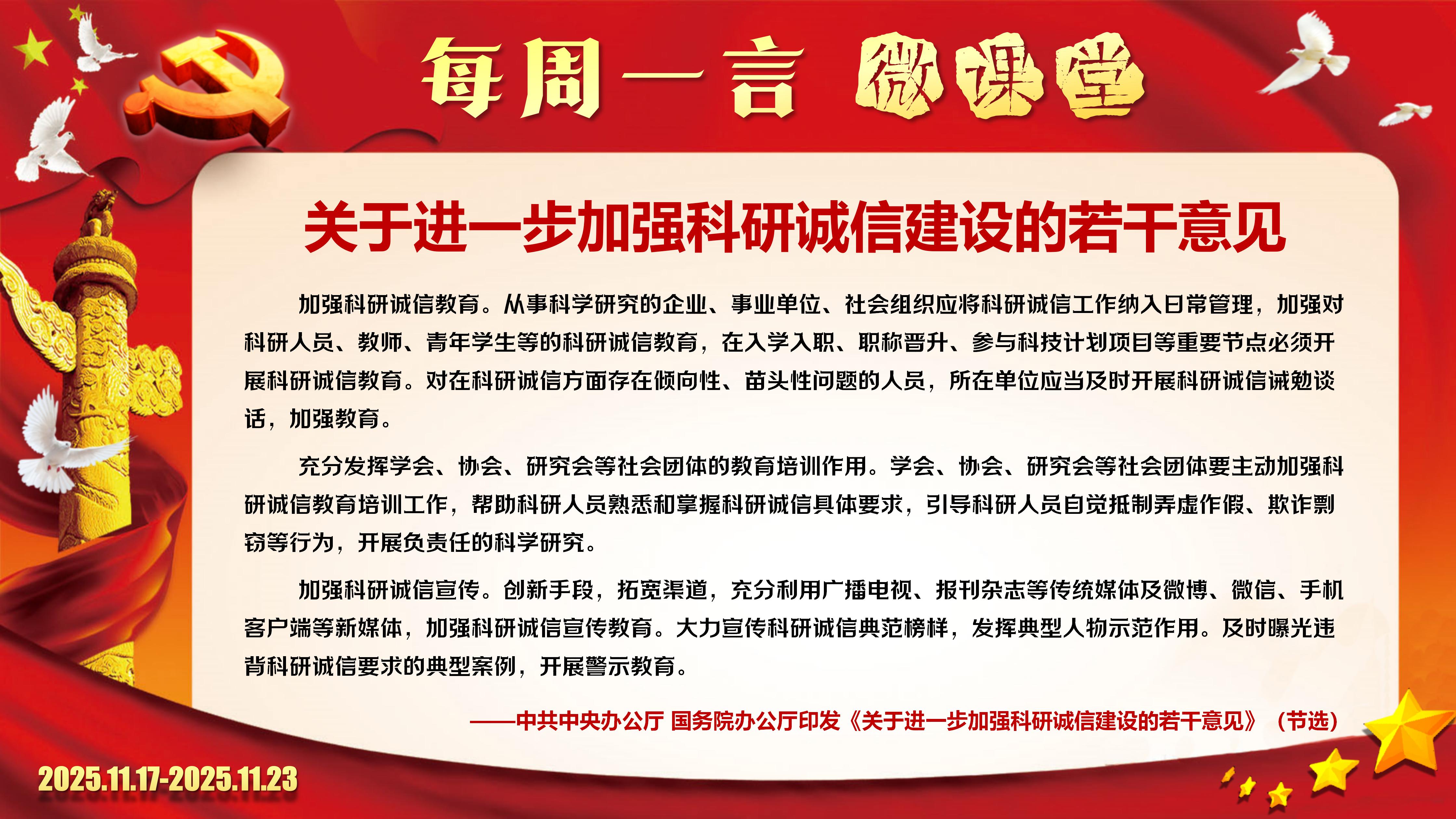 【20251119每周一言】关于进一步加强科研诚信建设的若干意见
