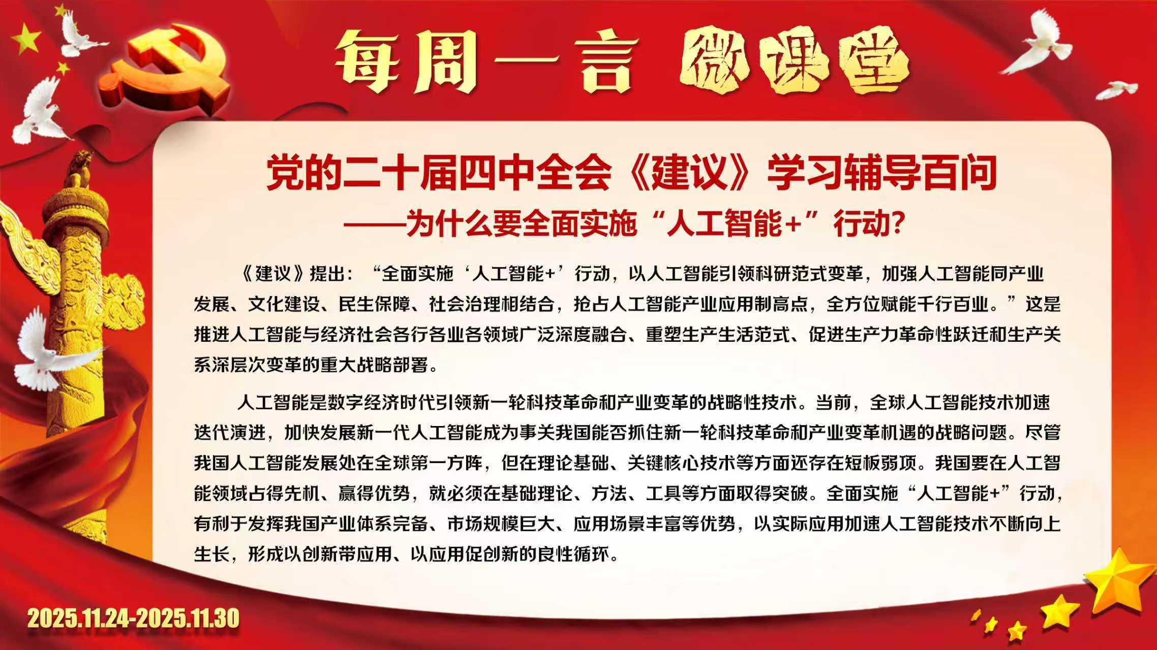 【20251124每周一言】党的二十届四中全会《建议》学习辅导百问——为什么要全面实施“人工智能+”行动?