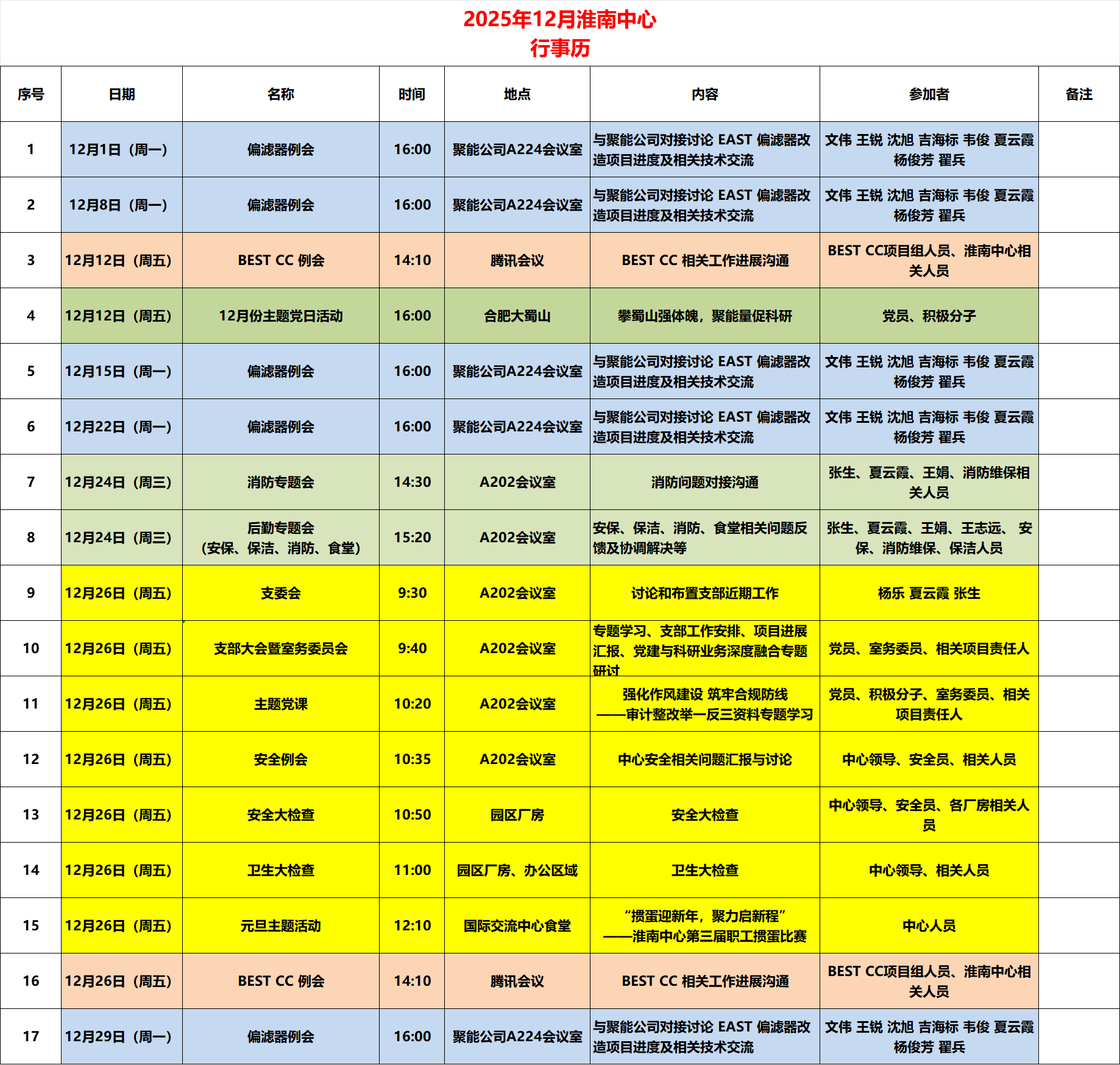 淮南中心月度行事历【2025年12月】