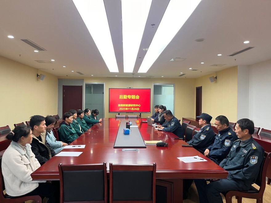 11月26日下午,淮南新能源研究中心组织召开后勤工作专题会议,重点围绕安保、保洁、消防等板块进行总结和改进部署。会议由中心综合处负责组织和主持,各服务单位负责人及一线工作人员参加会议。