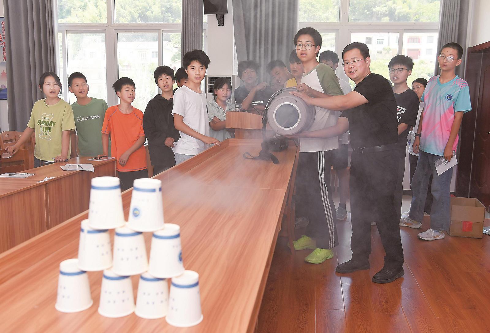 在岳西县来榜镇中心学校,等离子体所科普主管蔡其敏以《夸父追日 筑梦未来》为题,为200余名学子上了一堂精彩的科普讲座。讲座以合肥科学岛上的全超导托卡马克核聚变装置EAST为例,向在场学生生动地介绍了可控核聚变能作为人类未来终极能源的潜力和前景,讲述了人类追逐清洁能源的梦想,并展示了我国在可控核聚变能研究领域取得的进展和成就。为了让学生更直观地感受科学的魅力,活动还特别安排了“空气炮”互动游戏环节。游戏中,同学们亲眼见证了空气压缩与动能转化的物理现象,随着一声声砰砰的响声,圆圈烟弹冲出炮膛,现场气氛热烈,同学们的科学兴趣被极大地激发。