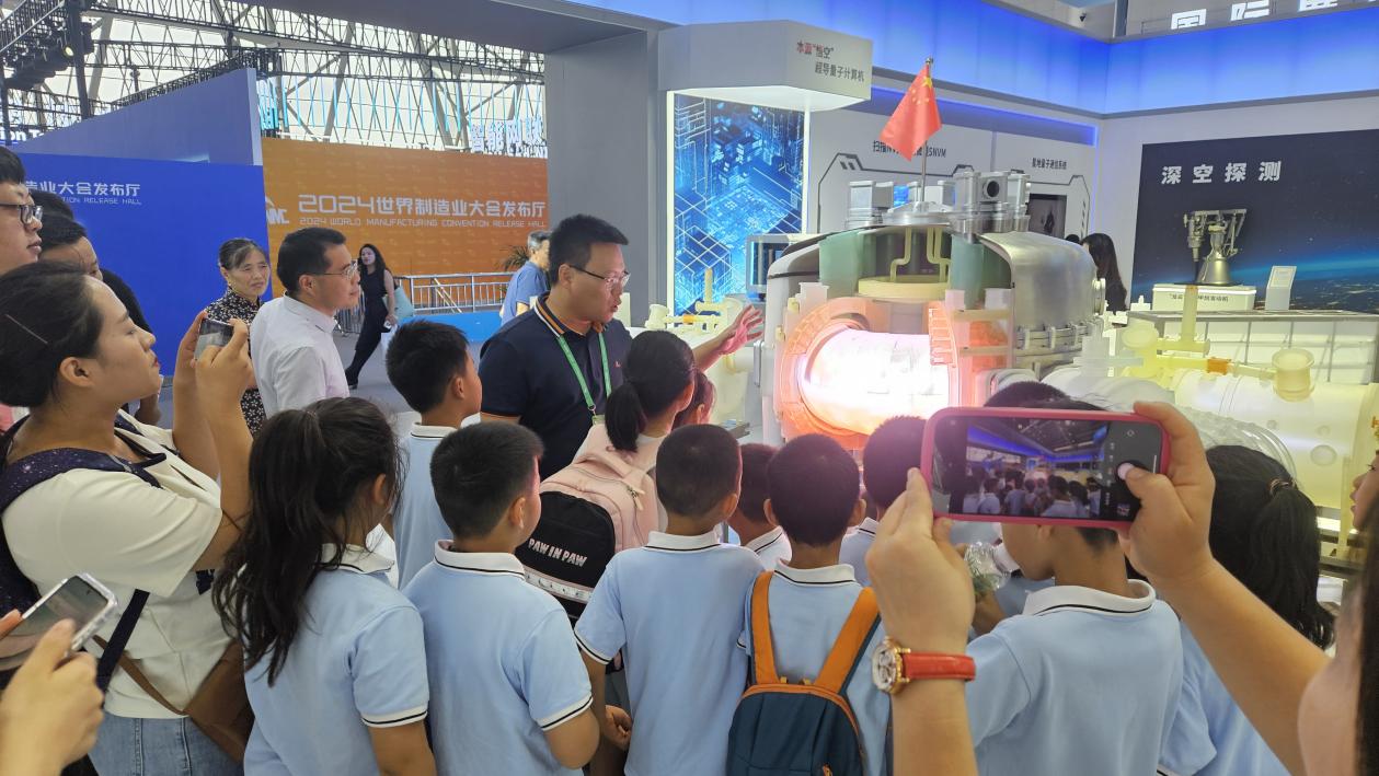 9月20日—23日,以“智造世界·创造美好”为主题的2024世界制造业大会在安徽合肥开幕,一批全球制造业领域最新科技成果精彩亮相。等离子体所EAST装置光电模型受邀在序厅参展。全国人大常委会副委员长张庆伟、省委书记梁言顺、省长王清宪等领导巡视展馆。