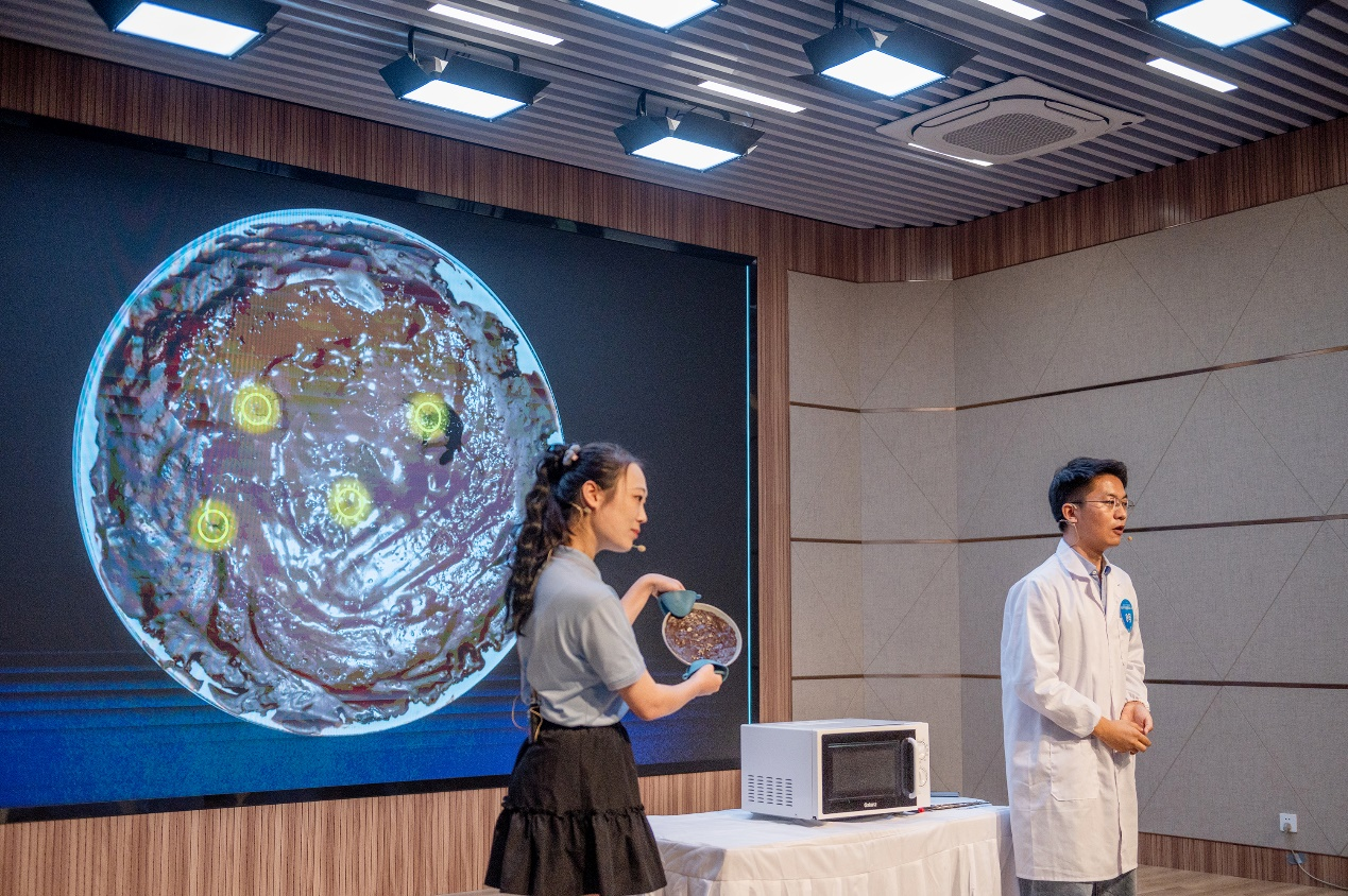李定真博士作为《藏在微波炉里的光速》实验的主要策划人员和主要表演人员,在强磁场科学中心的硕士韩天怡的通力协作和合肥现代科技馆的精心指导下,凭借深厚的知识底蕴、敏锐的科学思维和不懈的努力,精准操作,清晰讲解,通过巧妙地运用微波炉、巧克力和热敏纸,成功推算出光速。以生动直观且引人入胜的方式,向观众展现了科学的魅力,深刻诠释了科学并非遥不可及,而是近在人们的日常生活之中。