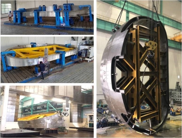 聚变堆真空室为等离子体提供稳态运行环境,是离堆芯最近的大环体真空密封部件,它不仅要承受自身和内部构件的重力,还会受到多种复杂电磁力的作用,其结构稳定性和使用功能安全性对聚变堆运行尤为重要。针对聚变堆真空室大尺寸、复杂轮廓、高精度、高焊接质量要求等特点,研究团队对真空室建造过程中涉及的关键技术开展了深入攻关和工艺预研,全面发展和掌握了真空室复杂轮廓高精度三维成型、高精密微变形自动化焊接、奥氏体钢焊缝窄空间全体积无损探伤、大空间三维测量准直、大型真空室高精度装配等多项关键技术,成功完成了全尺寸真空室扇区的研制。该研究可为未来聚变堆的建造提供重要技术保障。