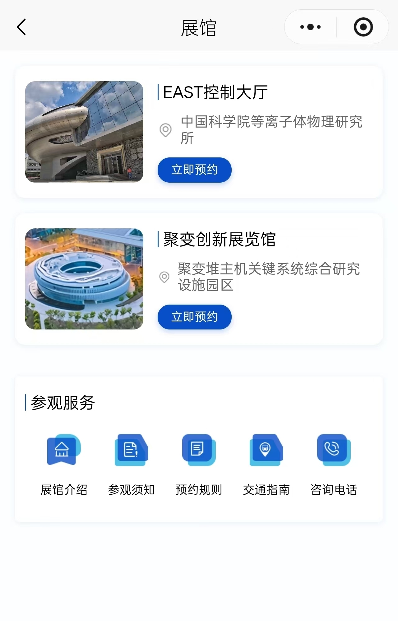 为进一步优化访客体验,加强所区、园区安全管理,提升信息化服务水平,中国科学院等离子体物理研究所官方小程序 “ASIPP码上办”已于2026年3月17日正式上线运行!该小程序“参观预约”与“访客登记”功能面向公众开放。如果您计划来所参观EAST控制大厅或聚变创新展览馆、了解核聚变研究进展,可通过“ASIPP码上办”小程序参观预约功能提交信息,预约审核通过后,再使用访客登记功能完成入所登记。