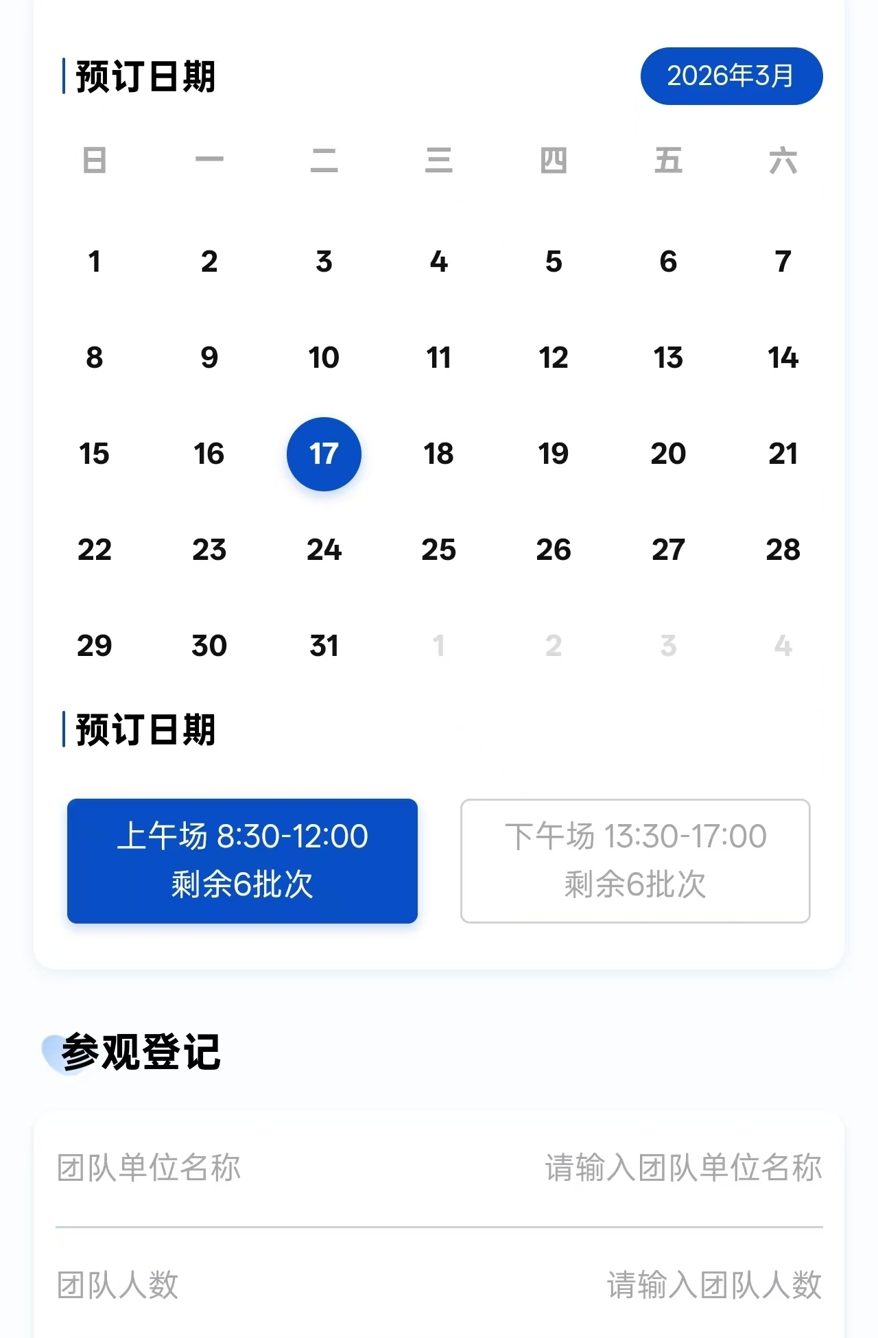 目前参观预约仅面向有组织的单位或团体(如学校、科研机构、企事业单位等)开放,暂不接受个人散客预约。感谢您的理解。
