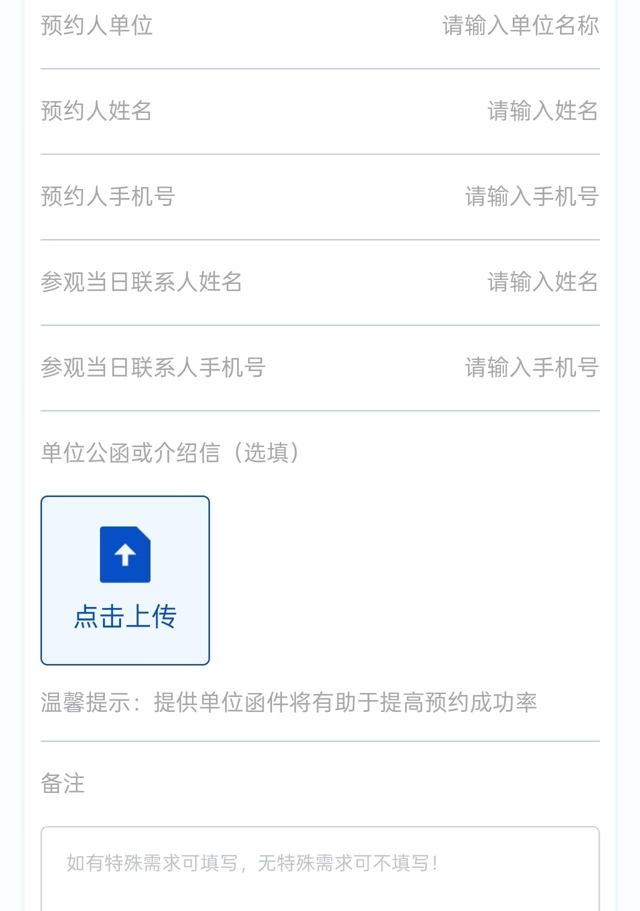 请于预约时段内按时到达,并出示预约成功二维码核验入场。逾期未到者,谢绝入场。未获批准者谢绝入场。