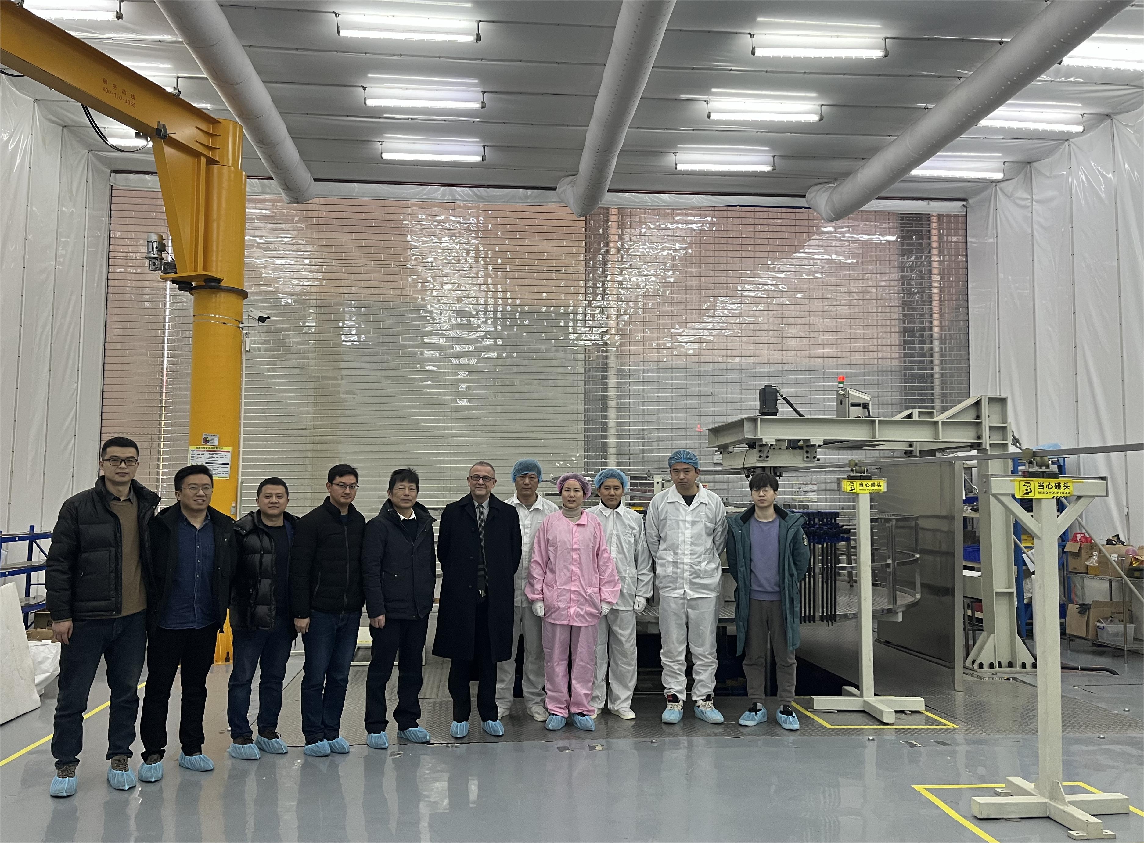 Arnaud Devred详细了解了CRAFT导体平台建设的目标和任务及车间两条绕制生产线和线圈制造的进展情况,对背场超导线圈的绕制工艺和过程质量管理表示了肯定。