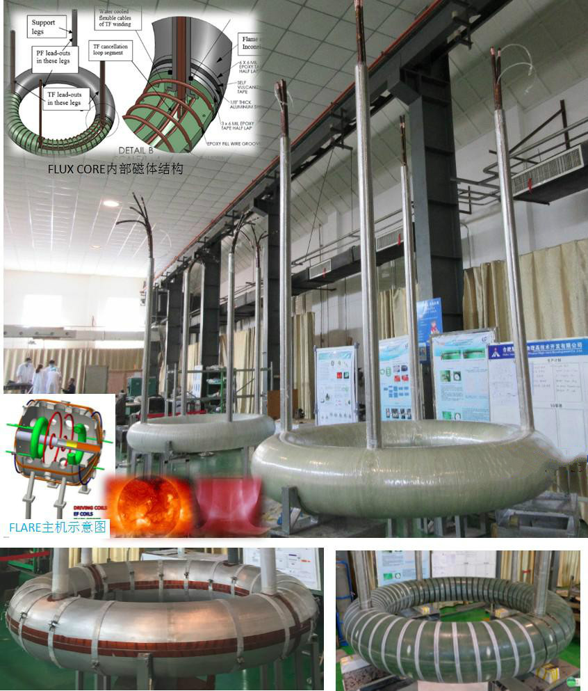 根据项目协议,等离子体所需为FLARE项目研制出两套高磁通耦合场线圈系统FLUX CORE,用于装置的磁重联等离子体位型的成形及平衡。两套系统已于2016年5月初顺利通过验收并正式启运交付美方。该项目由等离子体所装置总体研究室承担总体设计,合肥聚能电物理高技术开发有限公司承担加工制造任务。