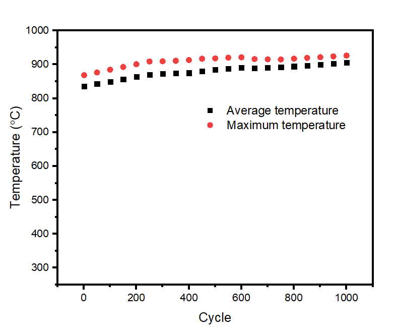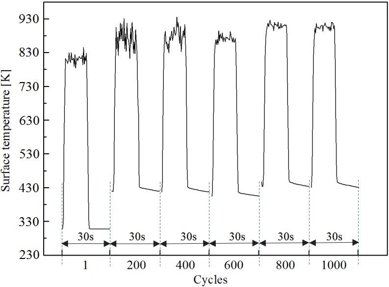 图2:1000次热循环钨表面温度测量值及温度变化
