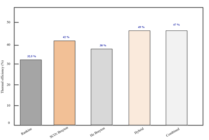 图4:基于各种动力循环的系统热效率