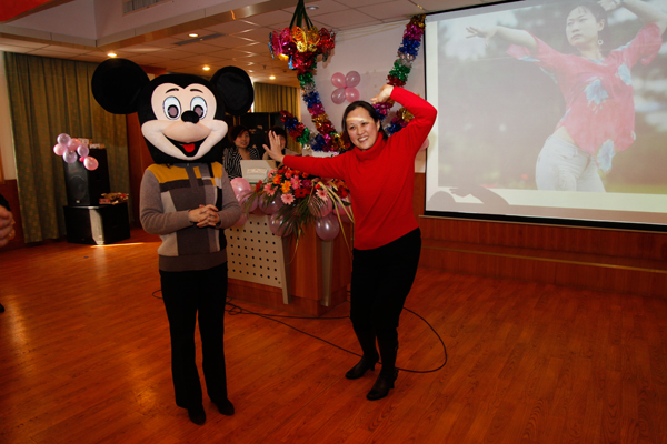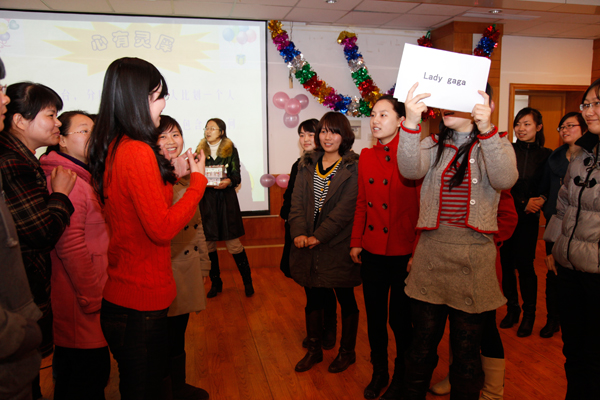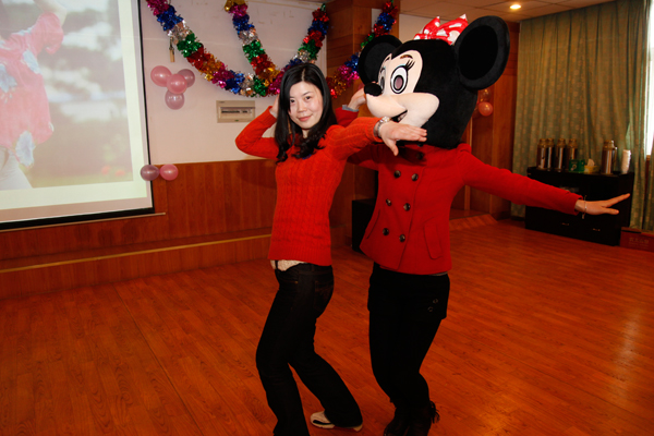 穿插在卡拉OK之中,研究生会主席赵鹏带领大家做起了“互动游戏”,登场者按要求比比划划,摆出各式造型,表演者认真谨慎,其表情动作却滑稽逗笑,引得台下笑声一片。参加娱乐的姐妹们,不管活动结果的胜负,只要勇敢登台展现自我,都快乐地抱回了精美的小礼品,更收获了快乐!整场联欢乐趣横生,在你我互动中惊喜不断。时间在欢声笑语中匆匆飞逝,最后全体女同胞合唱《明天会更好》。