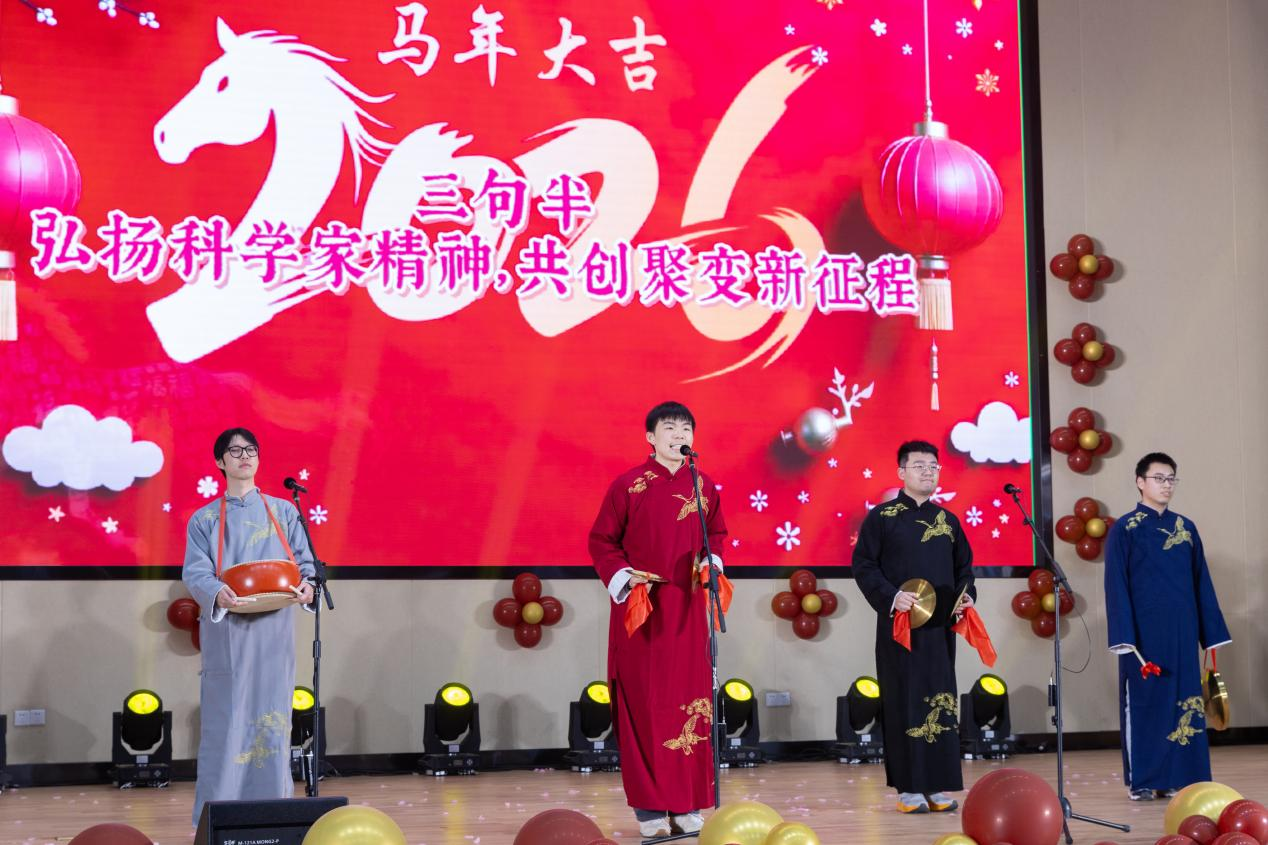 表彰大会结束后,“弘扬科学家精神 勇担新时代重任”2026迎新春主题活动精彩上演。舞台之上,有精彩的歌曲串烧、青春的舞蹈、幽默的脱口秀、有趣的小品、深情的朗诵、动人的合唱、妙趣横生的三句半、……演出形式丰富、情感真挚,生动展现了等离子体所人昂扬向上、锐意进取的精神风貌和对聚变事业的无限热爱。本次活动将科学家精神的时代内涵与科研报国的使命担当通过艺术形式呈现,有效增强了全体职工学生的归属感、荣誉感与幸福感,在全所范围内营造出团结和谐、昂扬向上的良好氛围。活动还设置了轻松欢快的互动环节,得到了合肥聚能电物理高技术开发有限公司、合肥科烨电物理设备制造有限公司的大力支持。