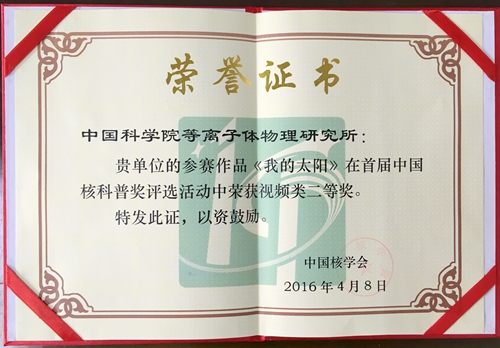 4月8日,首届中国核科普奖颁奖晚会在北京国家会议中心举行。等离子体所科普视频《我的太阳》在本次评选中脱颖而出,荣获二等奖。