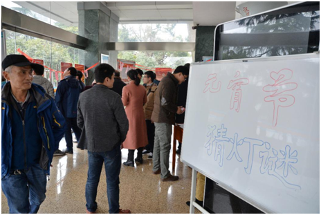 活动一开始便吸引了许多人,大家围到一个个灯谜前,注视着谜面苦思冥想,有的组织起了讨论小组,采取资源共享策略热火朝天地讨论着答案;有的猜出了答案,领到奖品后意犹未尽,帮助其他同事继续猜谜。不到一个小时,布置的近百条灯谜便被抢猜一空,整个现场充满了欢声笑语,洋溢着祥和喜庆的节日气氛。