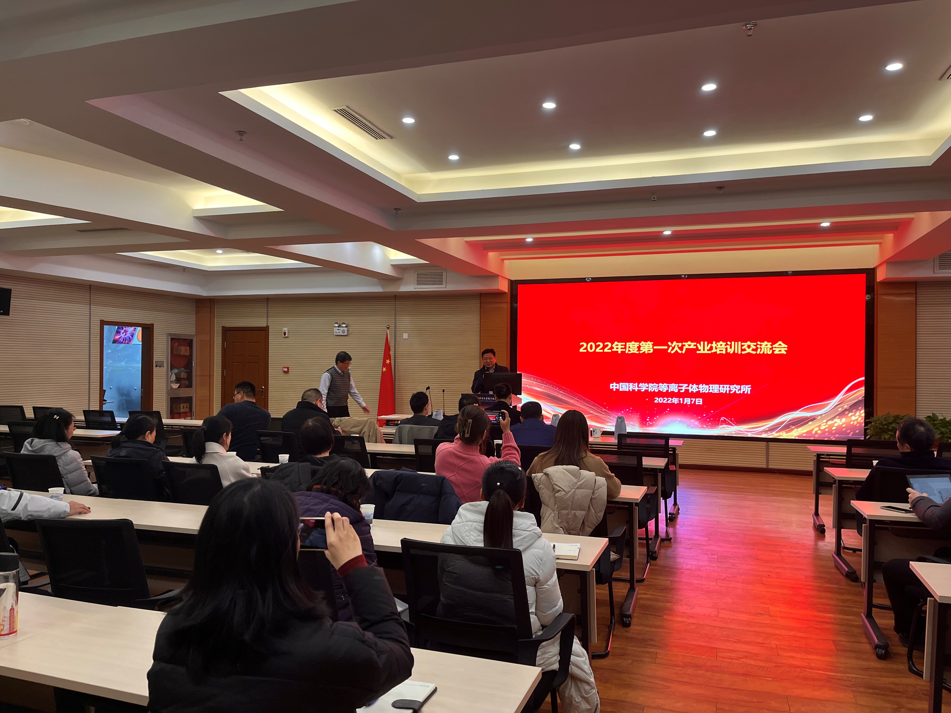 2022年1月7日,为推进成果转化工作,提高孵化企业风险意识和融资方案,等离子体所举行2022年度首次产业培训交流会。会议由产业部部长姚建铭主持,常务副所长刘甫坤出席并致辞。来自等离子体所的入股企业代表以及相关科研人员等40余人参加交流会。