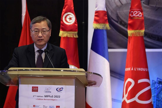 6月27日,2022年度中东和北非地区等离子体与聚变物理暑期培训项目正式开幕。此项目由等离子体物理研究所、法国原子能委员会(CEA)与突尼斯国家核科学与技术中心(CNSTN)共同举办。开班仪式由前突尼斯大使、总统外交顾问Hatem先生主持,突尼斯高等教育与科研部长布卡瑟尔、总理顾问萨米亚、中国驻突尼斯张建国大使出席并致辞,等离子体所所长宋云涛、副所长胡建生、院国际合作处处长董少华远程参加此次开幕式。