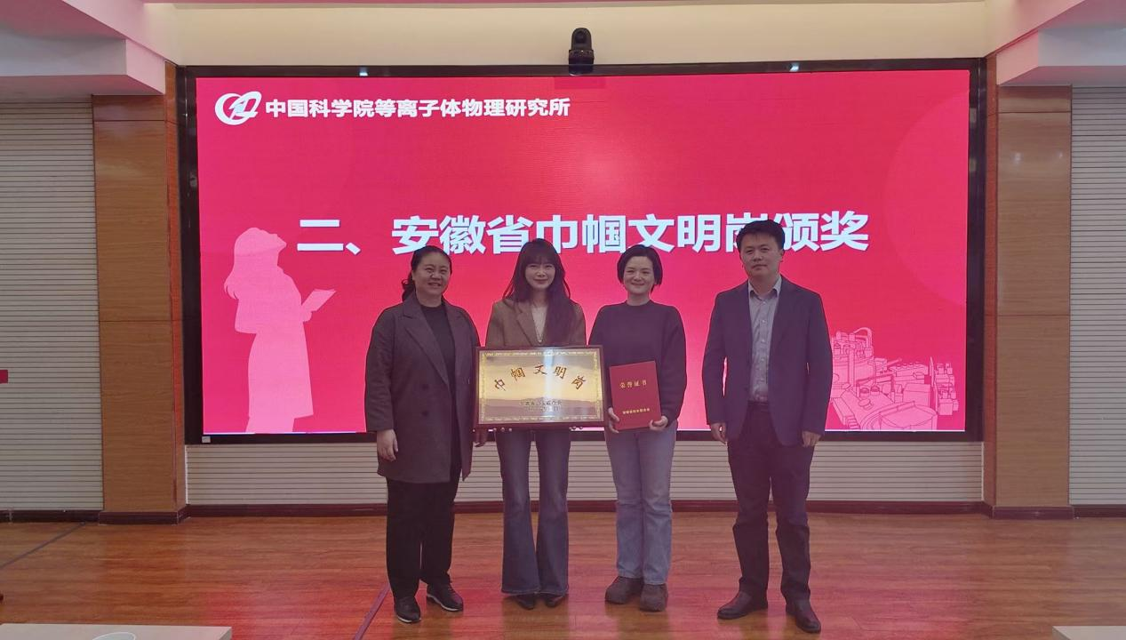 会上举行了“安徽省巾帼文明岗”颁奖仪式。日前,等离子体所BEST工程管理突击队获“安徽省巾帼文明岗”称号。钱金平、宋宁代表合肥物质院工会为BEST工程管理突击队代表颁发奖牌和证书。钱金平表示等离子体所工会倾听女职工心声,持续优化工作环境,不断完善服务保障,为女职工工作和发展创造条件。宋宁向等离子体所女职工致以诚挚问候,向今年获批省院奖项的团队表示热烈祝贺,鼓励女职工以严谨细致的作风、坚韧不拔的毅力和勇于创新的精神,为助推和服务保障抢占聚变能源科技制高点不断贡献巾帼力量。