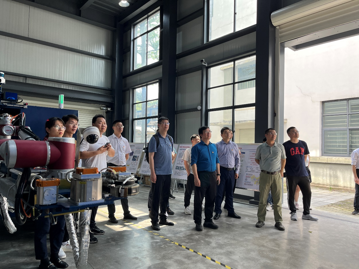 首先,大家在胡德安教授的带领下参观了湖南大学核工业机器人技术实验室,参观过程中,胡德安教授详细为大家讲解了湖南大学机械与运载工程学院围绕核装备可靠性技术研究平台开展的辐照损伤模拟与可靠性设计、核级材料关键制造工艺与装备以及核工业机器人与装备智能化等方面的技术研究情况。随后,两个支部成员参加党建交流会议。双方介绍了各自党支部党建工作开展情况,通过介绍大家互相了解了对方党建活动中的一些特色活动,并表示通过党建活动可以很好的向外界展示科研工作开展情况,希望可以借助联合党建的契机,进一步加强单位间技术交流合作,让科研与党建同频共振。会后,大家一起参观了“千年学府”岳麓书院,感受沉积在各种建筑之上的浓厚的文化气息。