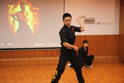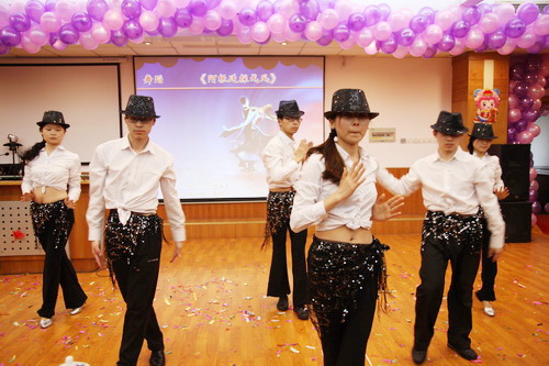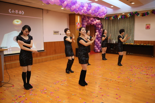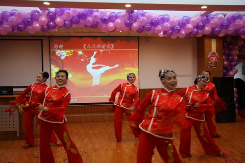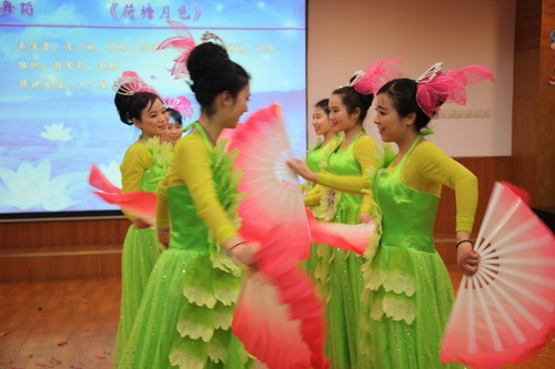 舞蹈《天天好时光》的表演者身着红色中国传统服装,挥舞火红的八角巾,整齐划一的舞步、灵活多变的队形、喜上眉梢的表情,一开场就点燃了欢庆的氛围。随后,精彩节目接连上演。双节棍表演中,表演者挥舞着重达数公斤的棍子,举重若轻、刚柔并济、招招电起,令人眼花缭乱,女表演者更是舞出巾帼不让须眉的气势。舞蹈《小苹果》紧追流行脚步,青春靓女的动感舞姿high翻全场;扇子舞《荷塘月色》展现了出水芙蓉、婷婷袅袅的身姿;《阿根廷探戈风》时动时静的舞步、左顾右盼的眼神、激昂顿挫的音乐,让观众们领略了浓厚的异域风情。